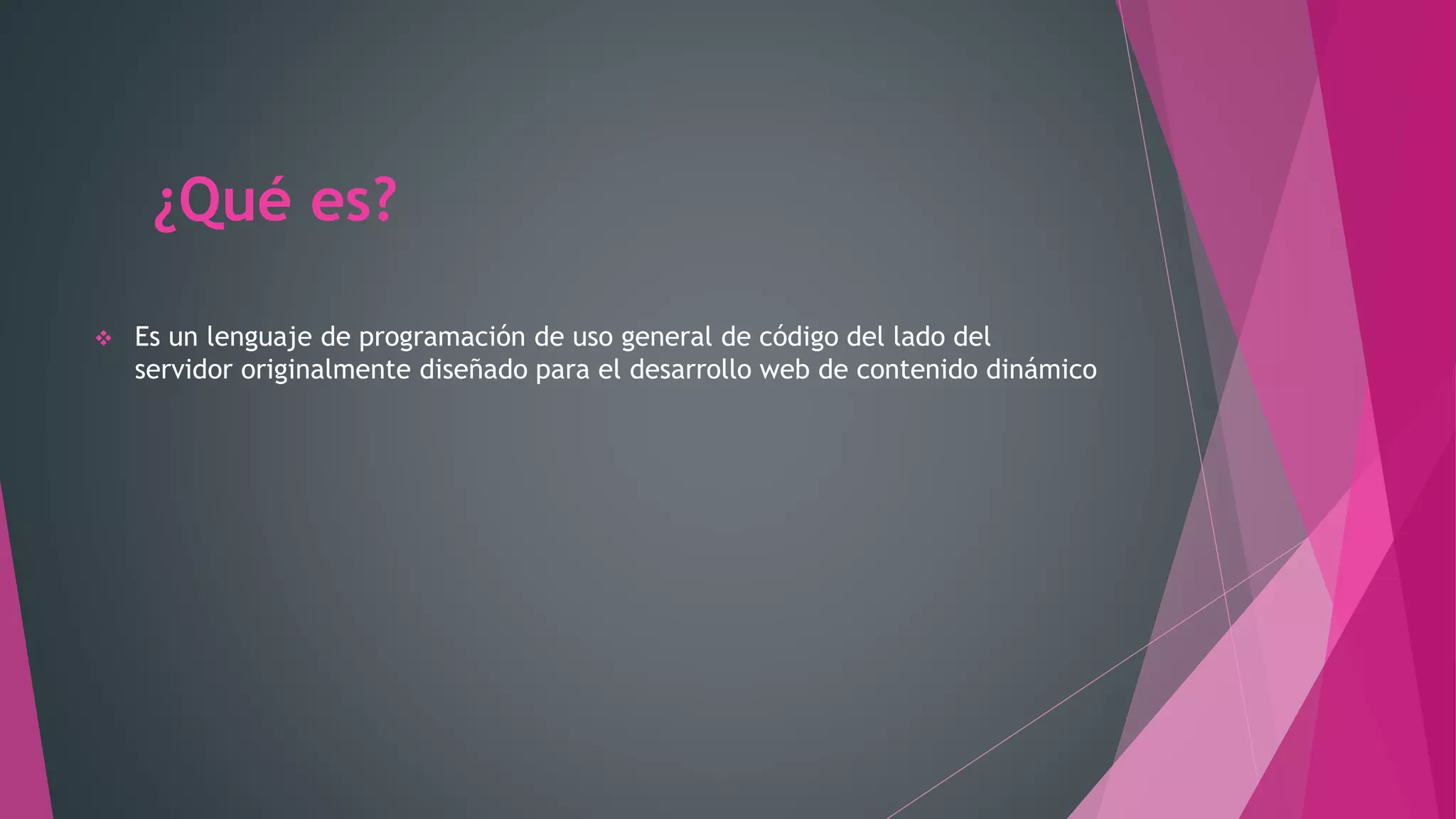 PHP es un lenguaje de programación de código abierto y multiplataforma originalmente diseñado para el desarrollo web. Fue creado en 1995 y se ha convertido en uno de los lenguajes más populares para crear sitios web dinámicos. PHP puede ser incorporado directamente en documentos HTML y se ejecuta en el servidor para generar páginas web dinámicas. Además de sitios web, PHP también se puede usar para crear aplicaciones de escritorio y móviles.