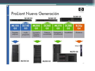 El documento habla sobre los diferentes tipos de servidores y centros de datos. Explica que un servidor es una computadora central que provee servicios a otras computadoras en una red. Luego describe los diferentes tipos de sistemas operativos y servidores, incluyendo servidores de aplicaciones, audio/video, correo y bases de datos. Finalmente, define un centro de datos y explica la clasificación en 4 niveles o "tiers", dependiendo del nivel de redundancia, disponibilidad y tolerancia a fallas de la infraestructura.