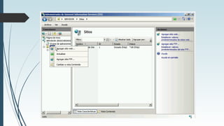 El documento describe cómo instalar un servidor web y FTP en Windows Server 2008 R2. Explica que IIS es un conjunto de servicios para servidores web de Microsoft que viene integrado con Windows y es fácil de administrar. También define FTP como un protocolo para transferencia de archivos y un servidor FTP como un programa que permite el intercambio de datos entre servidores a través de Internet u otras redes.