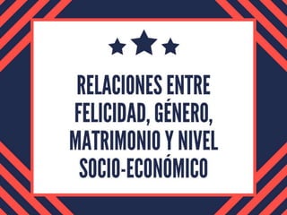 El estudio encontró que las mujeres son menos felices que los hombres a partir de los 40 años. Sin embargo, los resultados también indicaron que el género no determina la felicidad y que hombres y mujeres pueden ser igualmente felices. La felicidad depende más del estado civil que del género. Se hizo una pregunta sobre la riqueza a dos grupos, donde el primer grupo la asoció con logros materiales y el segundo grupo la asoció con experiencias y relaciones básicas.