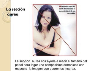 Este documento describe diferentes tipos de diseños de páginas, incluyendo la sección áurea que ayuda a lograr una composición armoniosa, la cuadrícula simétrica donde las páginas pares e impares son espejos, variaciones simétricas que mantienen la forma pero cambian el ancho de las columnas, cuadrículas basadas en columnas o módulos de igual tamaño, y cuadrículas asimétricas que mantienen la armonía a pesar de variaciones en el ancho de las columnas.