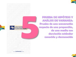Este documento resume los conceptos fundamentales de las pruebas de hipótesis, incluyendo cómo plantear hipótesis nulas y alternativas, elegir un nivel de significancia, estimar un estadístico de prueba, establecer una regla de decisión, tomar una decisión y llegar a una conclusión. Explica los pasos para realizar pruebas de hipótesis sobre proporciones poblacionales, medias con desviación estándar conocida y medias con desviación estándar desconocida.