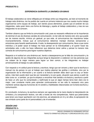 Este documento describe los procesos cognitivos involucrados en la composición de escritos. Explica que la escritura requiere habilidades lingüísticas como la lectura, comprensión y expresión oral. Luego describe los principales modelos teóricos sobre los procesos de planificación, traducción y revisión propuestos por Hayes y Flower, asi como los modelos de "decir el conocimiento" y "transformarlo" de Bereiter y Scardamalia. Finalmente menciona que Hayes actualizó su modelo original para incluir componentes actitudinales