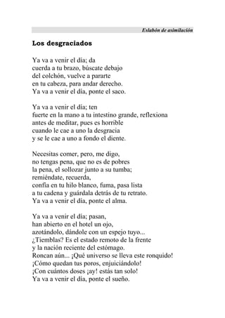 El documento aborda la didáctica de la lectura interpretativa desde la perspectiva de la pragmática, destacando la interacción entre el lector y el texto como un proceso constructivo de sentido. Se propone un enfoque en donde el estudiante y el profesor son lectores activos, y se enfatizan las estrategias didácticas para lograr un aprendizaje significativo. Incluye ejemplos literarios de César Vallejo que ilustran las complejidades de la experiencia humana y la interpretación textual.