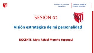 Este documento presenta la segunda sesión de una visión estratégica de la personalidad. El objetivo es conocer la definición y tipos de personalidad e identificar los rasgos positivos y negativos propios. Se explican conceptos como personalidad según Freud y tipos según Hipócrates. Se pide analizar el propio temperamento en diferentes ámbitos y sus causas, y reflexionar sobre lo aprendido y su importancia para conocer la propia personalidad.