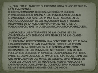El documento describe la importancia de aprender historia para comprender el presente, ya que los eventos actuales tienen sus raíces en el pasado. También detalla los métodos que utiliza para enseñar historia, incluyendo métodos memorísticos, constructivistas y metacognitivos. Finalmente, analiza las circunstancias que llevaron a los habitantes de la Nueva España a independizarse de España y convertirse en una nación independiente.
