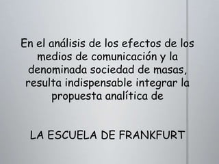 La Escuela de Frankfurt, fundada en 1923 en Alemania, desarrolló una crítica a la reducción de la libertad y la igualdad, así como a la masificación degradante de la sociedad de masas. Consideraba que el derecho positivo actualiza la capacidad destructiva del poder estatal, el cual es necesario para mantener un modelo de desarrollo capitalista que requiere de un estado fuerte para imponer las condiciones que mantengan los privilegios de la clase burguesa. La Escuela de Frankfurt se trasladó a Nueva York en 1933 para escapar