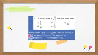 Este documento presenta un grupo de estudiantes que incluye a Melvin Almerco, Miluska Alvarez, Anderson Terrones y Luz Henriquez. El grupo se identifica como Grupo 1 y está trabajando en razonamientos trigonométricos. El documento finaliza agradeciendo a Arellys Barba.