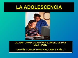 El documento describe los cambios físicos, psicológicos y sociales que ocurren durante la adolescencia. Explica los cambios en la pubertad como el desarrollo de características sexuales secundarias y la menarquia en mujeres. También cubre problemas comunes como el pandillaje, drogadicción, delincuencia juvenil, homosexualidad, prostitución, alcoholismo y tabaquismo. Finalmente, discute otros temas como los trastornos alimenticios, el embarazo en adolescentes y el suicidio.