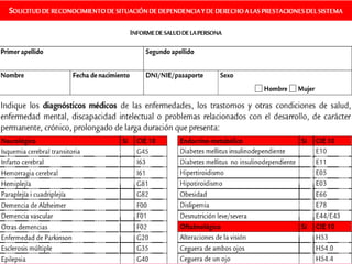 La Ley de Dependencia de 2006 establece un sistema para atender a personas en situación de dependencia en España. Reconoce el derecho a la promoción de la autonomía personal y a la atención de dependientes. Las personas pueden solicitar el reconocimiento de su situación de dependencia y, de ser reconocidas, recibir servicios o prestaciones según su grado de dependencia moderada, severa o gran dependencia.