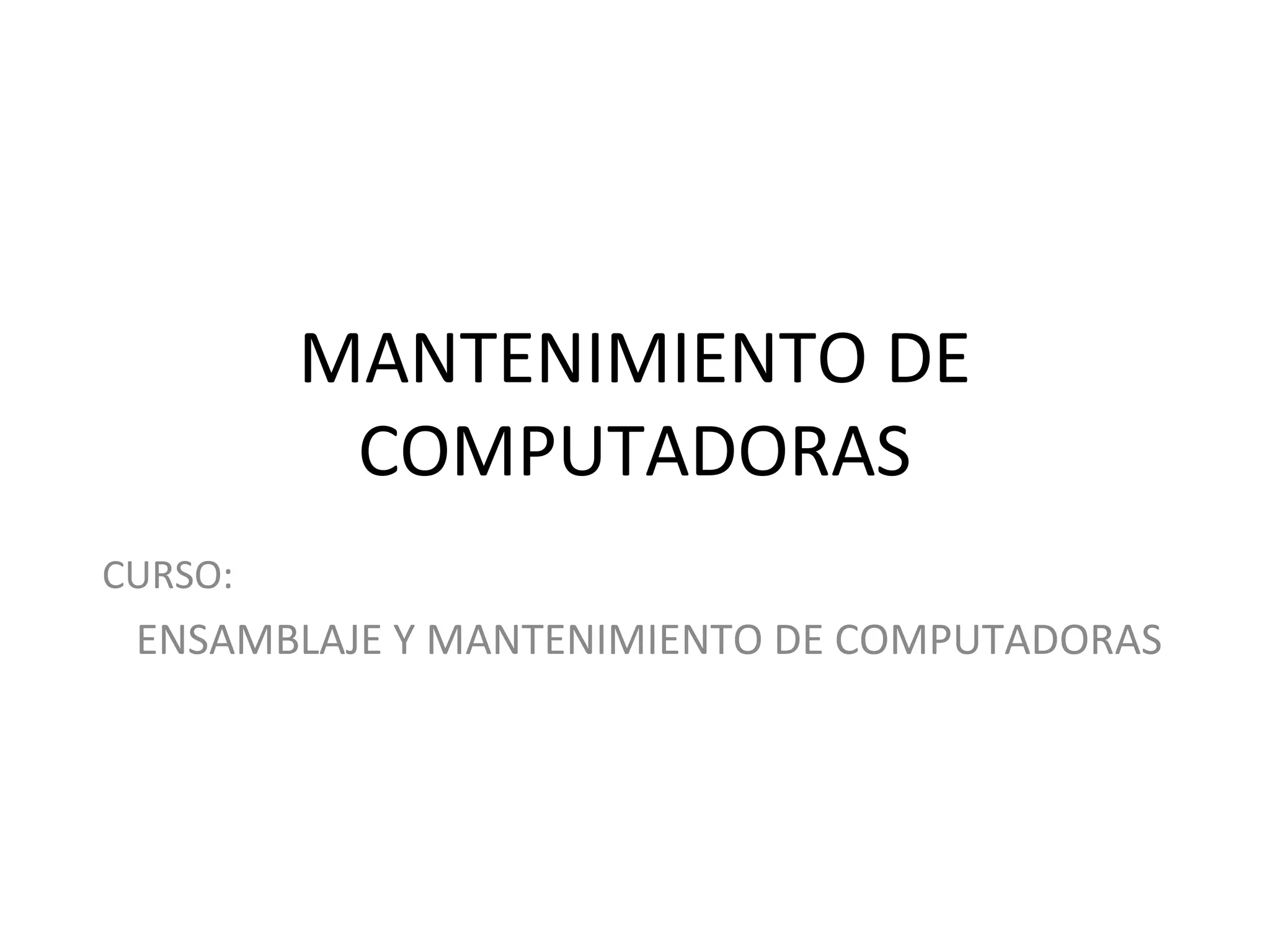 El documento habla sobre el mantenimiento de computadoras. Explica que es importante limpiar las computadoras regularmente para prolongar su vida útil y mantenerlas en buenas condiciones. También menciona que el polvo, calor, humedad y cargas eléctricas son factores a considerar en el mantenimiento. Además, describe diferentes tipos de mantenimiento como el preventivo y correctivo.