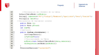 Este documento describe listas doblemente enlazadas y listas circulares. Las listas doblemente enlazadas tienen cada nodo enlazado tanto al nodo anterior como al siguiente, lo que permite recorrer la lista en ambas direcciones. Las listas circulares enlazan el último nodo con el primero, formando un bucle. El documento explica cómo implementar estas estructuras de datos, incluidas operaciones como insertar, eliminar y buscar nodos. También propone construir una aplicación para el registro de empleados utilizando estas listas.