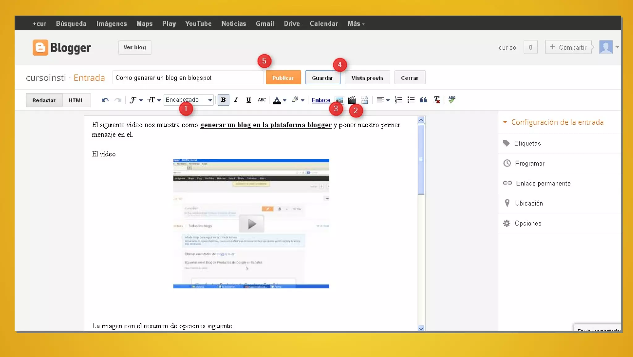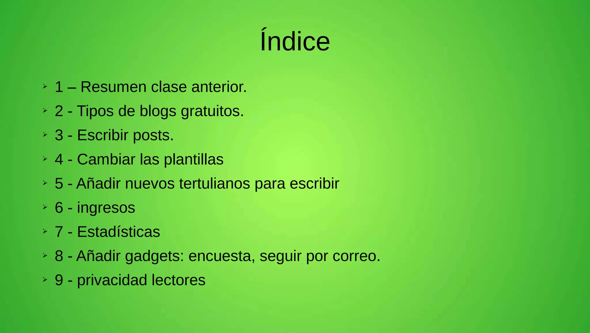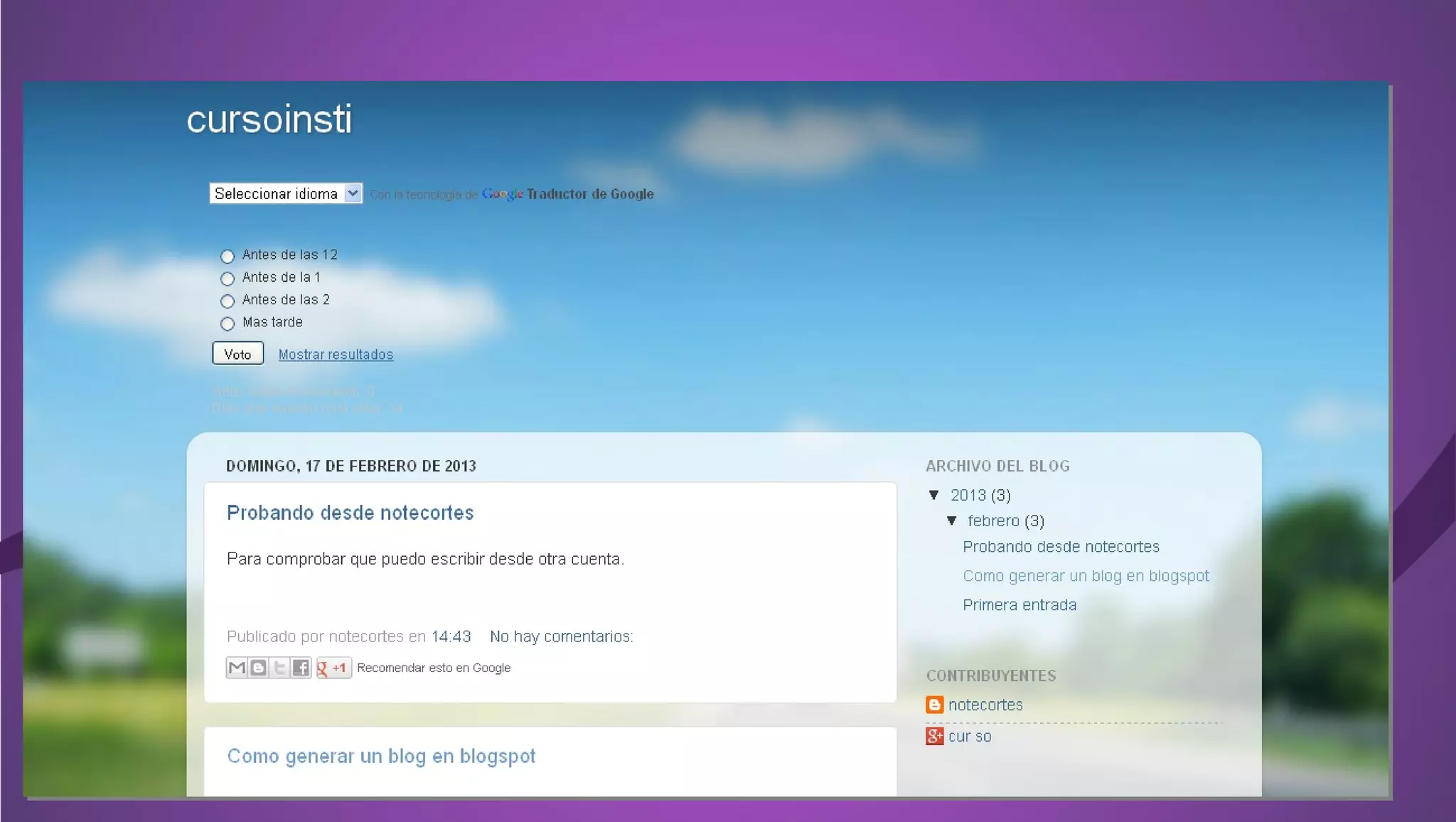 Este documento proporciona instrucciones para crear un blog, incluyendo cómo elegir entre plataformas de blogs gratuitas como Blogger, WordPress y Tumblr, cómo escribir entradas y publicar contenido multimedia, cómo personalizar la plantilla, agregar colaboradores y gadgets como traductores y encuestas, y configurar la privacidad.