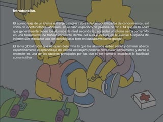 Este documento describe una situación de aprendizaje diseñada para que estudiantes de nivel secundario aprendan las partes del cuerpo y enfermedades comunes en inglés a través de varias actividades como hacer listas, rompecabezas, glosarios y pronunciaciones. El aprendizaje se evaluará con una rúbrica. El documento también presenta el marco contextual de la didáctica crítica y concluye enfatizando la responsabilidad de los maestros de crear estrategias interesantes que promuevan el aprendizaje