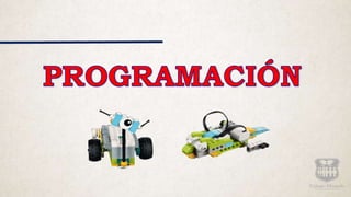 El documento describe las diferentes piezas y bloques de programación utilizados en WeDo 2.0 para la robótica primaria. Explica las piezas electrónicas como el hub inteligente, motores y sensores, así como los bloques de programación para controlar el motor, enviar mensajes, esperar eventos y repetir acciones. Además, presenta a las profesoras Dení Ramírez y Lilián Cortés que imparten la asignatura de robótica en dos plantes diferentes.