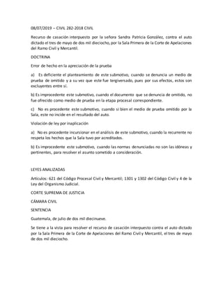 El Tribunal resolvió un recurso de casación relacionado a un juicio de nulidad absoluta de un negocio jurídico. El recurrente alegó error de hecho en la apreciación de la prueba y violación de ley por inaplicación. El Tribunal analizó primero el submotivo de error de hecho y determinó que no hubo tergiversación o omisión de documentos que acreditaban que el recurrente usaba diferentes nombres. Luego concluyó que no se incurrió en violación de ley al resolver el asunto. Finalmente, confirmó el auto