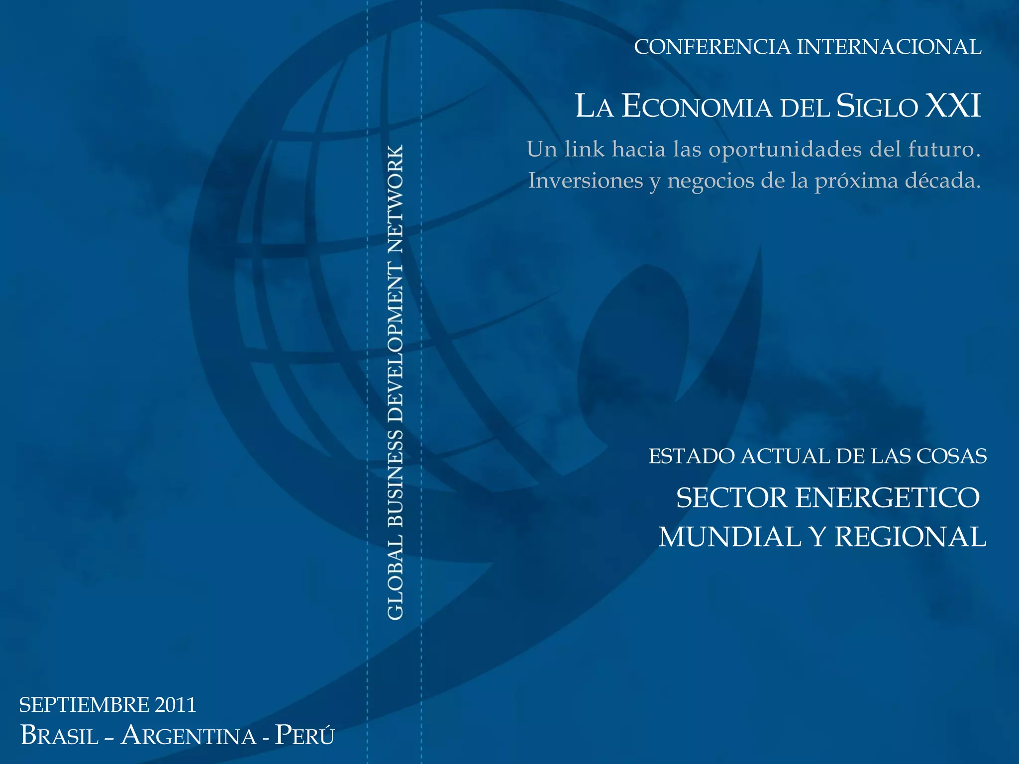 El documento presenta un análisis sobre la evolución y proyecciones del consumo de energía global, destacando que el crecimiento significativo proviene principalmente de China e India. Se espera que, para 2035, las energías renovables representen el 15% del consumo total de energía, mientras que los combustibles fósiles seguirán dominando el mercado. Además, se aborda el impacto de las fluctuaciones en los precios del petróleo y el desarrollo de tecnologías renovables en la región de América Latina.