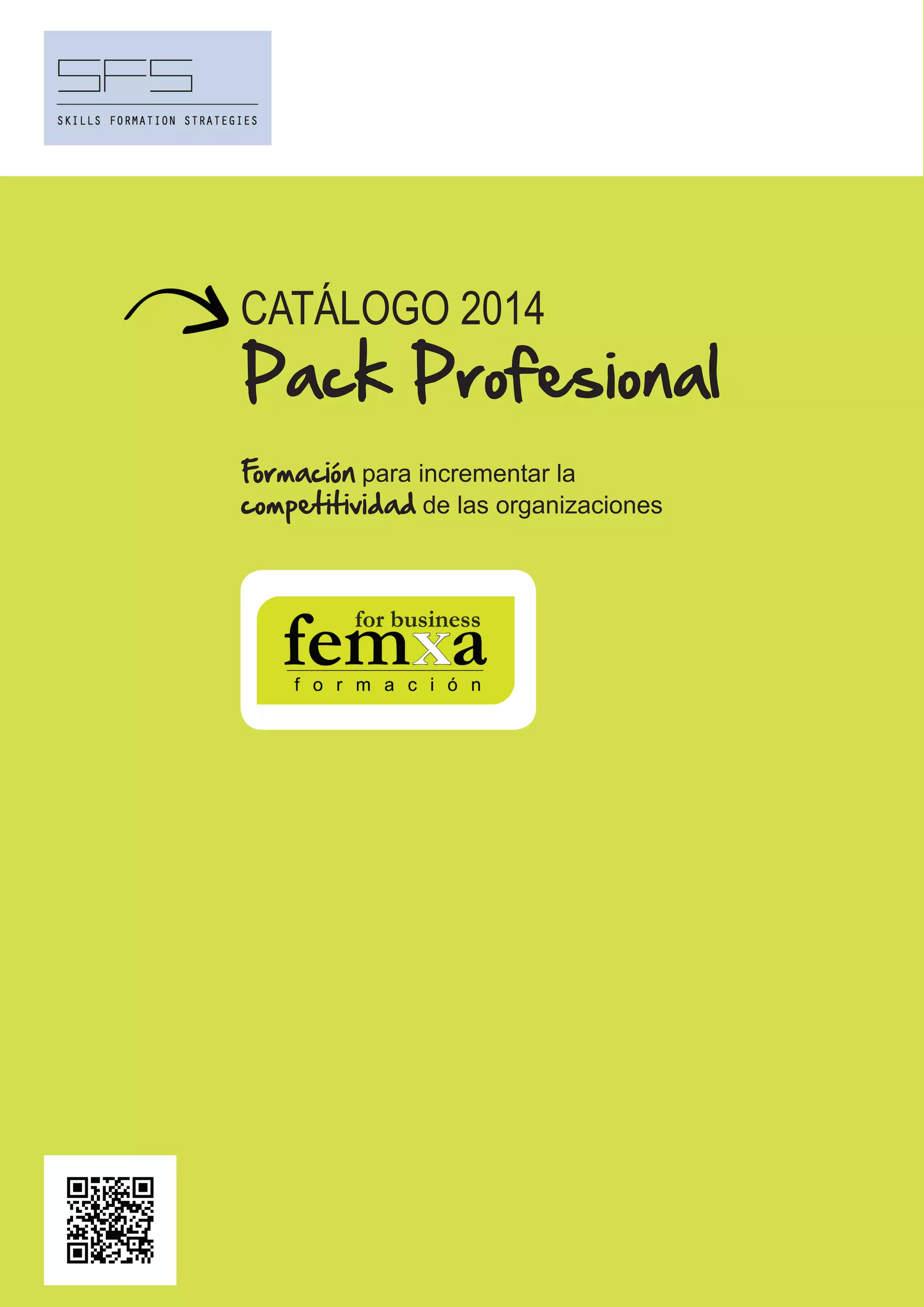 Este documento presenta un catálogo de formación profesional para 2014 organizado en seis secciones: formación transversal, sectorial, programas con certificación, certificados profesionales online, formación presencial y formación obligatoria. Incluye más de 150 acciones formativas en áreas como administración, RRHH, idiomas, marketing, ofimática, entre otras. La formación se imparte bajo modalidad e-learning y a distancia con duraciones que van desde 25 a 240 horas.
