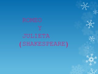 La obra trata de la historia de amor entre Romeo y Julieta, pero su amor está imposibilitado debido al odio entre sus familias, los Montesco y los Capuleto. Romeo conoce a Julieta en una fiesta de los Capuleto y se enamoran, pero saben que sus familias se odiarán. Intentan escapar juntos con la ayuda de Fray Lorenzo, pero sus planes fallan y ambos terminan muriendo por consumir veneno.