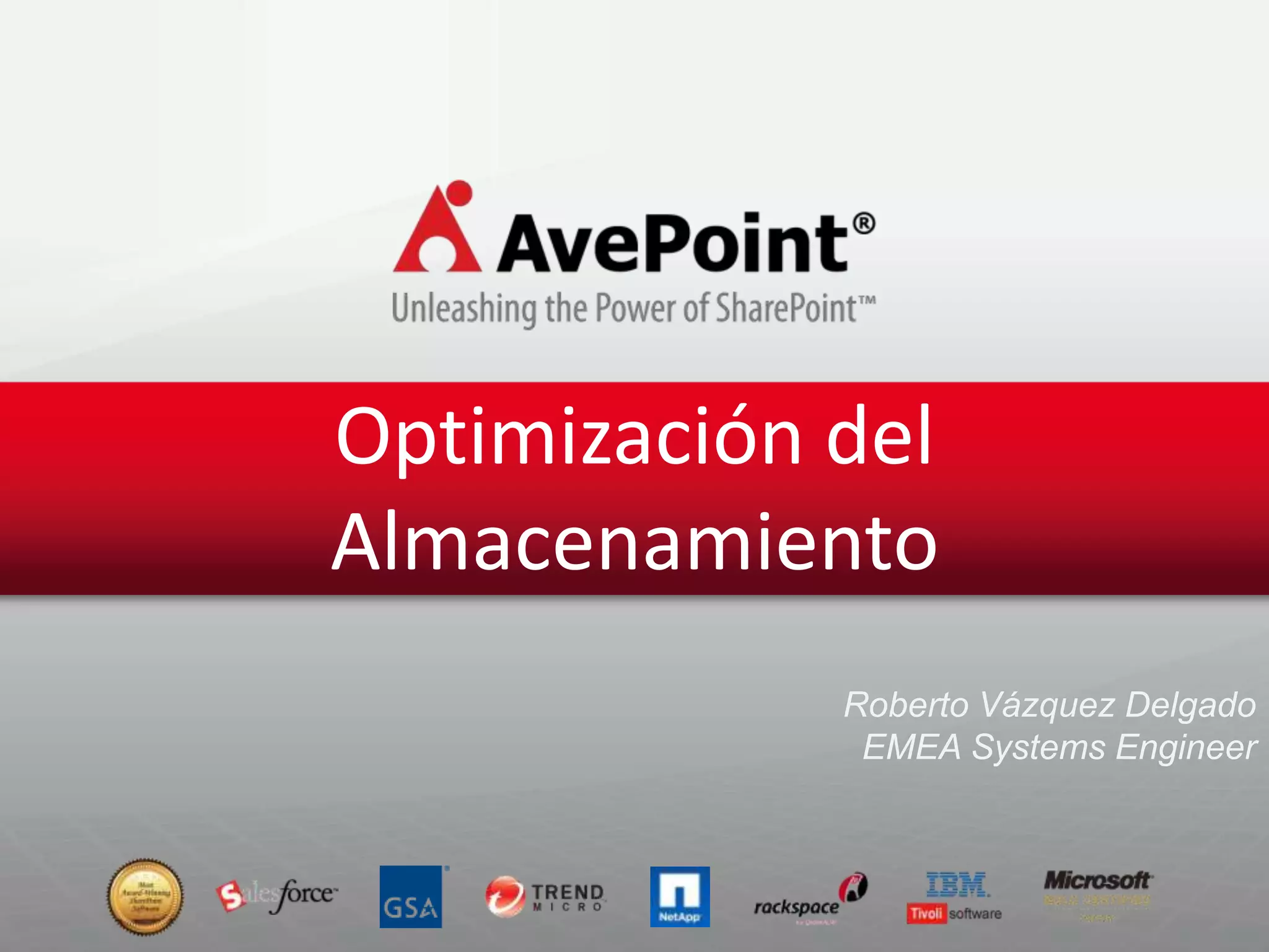 Este documento trata sobre las herramientas y métodos para optimizar el almacenamiento en SharePoint. Brevemente describe: 1) mover los archivos BLOB fuera de las bases de datos de contenido usando EBS o RBS para reducir su tamaño y mejorar el rendimiento, 2) usar herramientas como DocAve Connector para acceder a datos de archivos existentes sin migrarlos a SharePoint/SQL, y 3) establecer cuotas y alertas, dividir bases de datos grandes y archivar contenido inactivo para administrar el crecimiento del almac