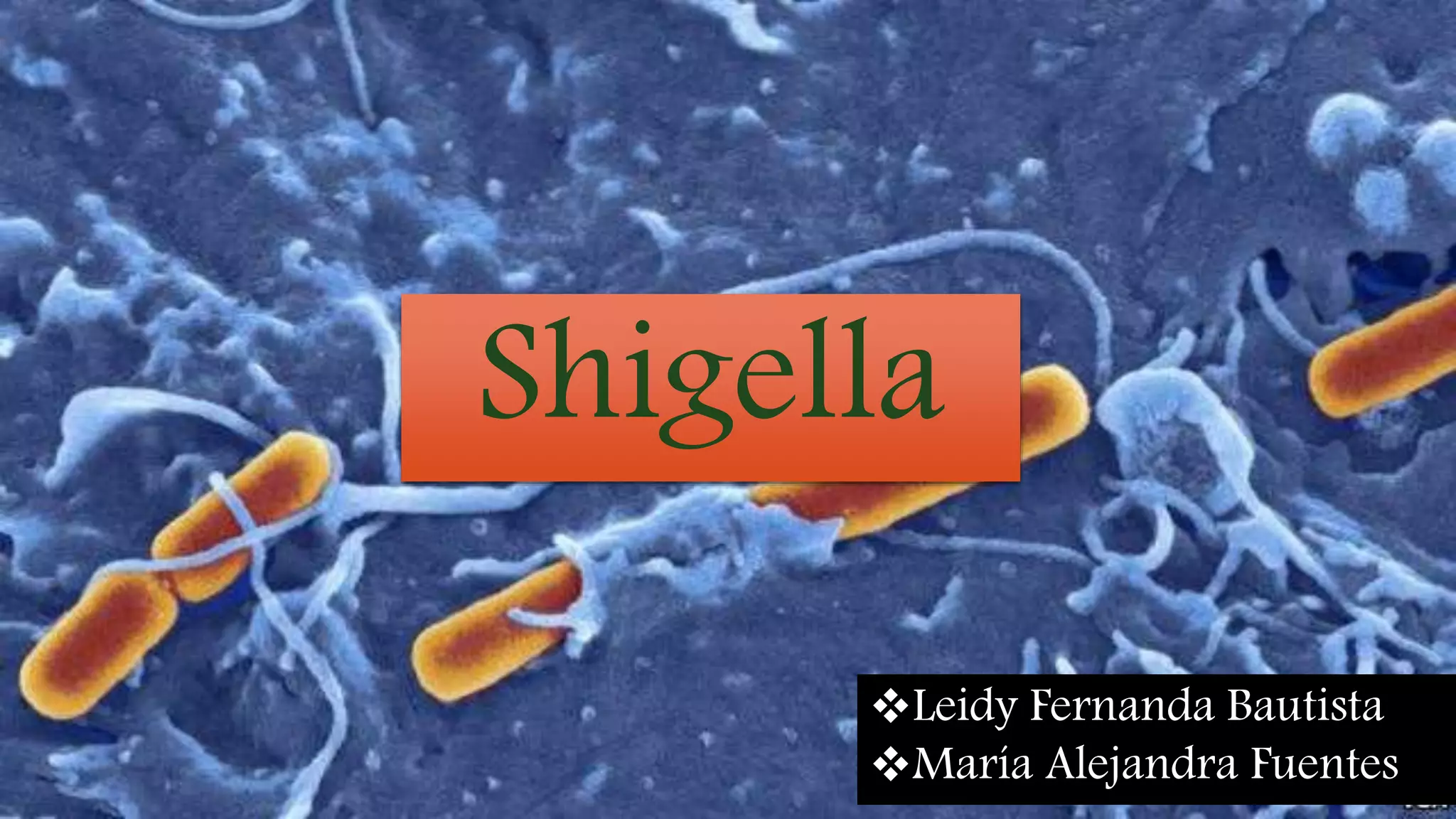 Este documento describe la bacteria Shigella, clasificada como un bacilo gramnegativo dentro del dominio de las bacterias. Explica su taxonomía, características, grupos serológicos, epidemiología, mecanismos de transmisión, factores de virulencia, patogénesis, cuadro clínico, complicaciones, diagnóstico y pruebas serológicas para identificar Shigella.