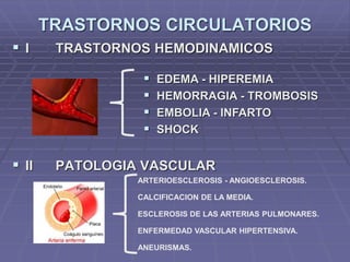Este documento resume tres tipos principales de shock: cardiogénico, hipovolémico y distributivo. El shock cardiogénico se caracteriza por una disminución del volumen de eyección y gasto cardíaco, así como un aumento de la presión venosa central y las resistencias vasculares sistémicas. El shock hipovolémico implica una disminución de la precarga cardíaca, el gasto cardíaco y la perfusión tisular debido a la pérdida de volumen. Finalmente, el shock distributivo incluye una redistrib