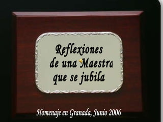 Este documento es un extracto de un discurso de una maestra que se jubila después de 40 años de enseñanza. Reflexiona sobre cómo ha cambiado la educación a lo largo de los años, pasando de ser más estructurada y centrada en las habilidades básicas a ser más flexible pero también más dispersa, con muchas interrupciones y celebraciones que distraen de lo fundamental. Antes los maestros tenían más autoridad pero ahora los niños y padres a menudo cuestionan sus decisiones.