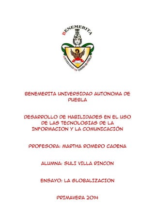 El documento analiza el concepto de globalización y sus efectos positivos y negativos. Explica que la globalización conlleva una mayor integración económica entre países a través del comercio y los flujos financieros. Entre sus ventajas se encuentran menores costos de producción y mejores productos, pero también genera mayores desigualdades económicas entre y dentro de las naciones.