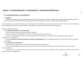 El documento presenta información sobre organizaciones y documentos comerciales. Explica que una organización es un conjunto de personas que actúan de forma coordinada para alcanzar metas comunes. Luego describe diferentes tipos de documentos comerciales como órdenes de compra, facturas y recibos, y explica sus propósitos y partes constitutivas. Finalmente, incluye ejemplos prácticos ilustrativos sobre cómo completar estos documentos.