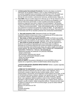 El SIDA es causado por el virus VIH que ataca y destruye el sistema inmunológico. Se transmite a través del sexo sin protección, la sangre y de madre a hijo. No tiene cura, pero se puede prevenir usando condones, no compartiendo agujas y tratando a las personas embarazadas.