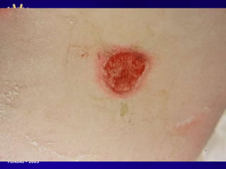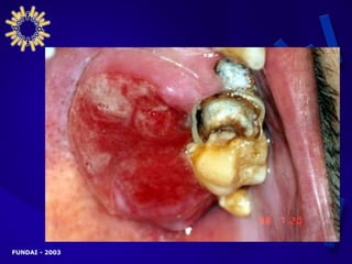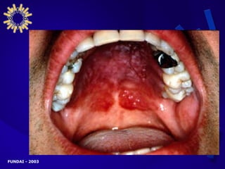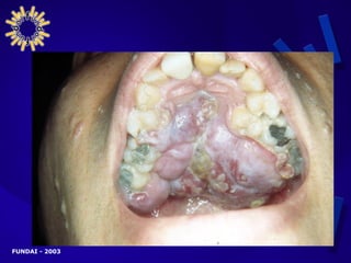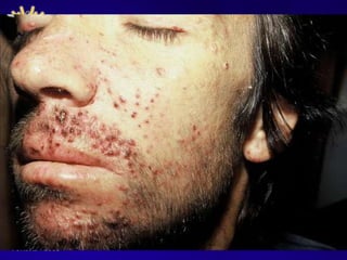 Este documento describe las manifestaciones clínicas iniciales y avanzadas de la infección por VIH/SIDA. Entre las manifestaciones iniciales se encuentran queilitis angular, candidiasis oral, tiñas, leucoplasia oral vellosa, herpes zoster y varicela. Las manifestaciones avanzadas incluyen presentaciones respiratorias, neurológicas, digestivas e infecciones bacterianas como la salmonelosis, así como manifestaciones cutáneas diversas.