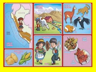La Región Sierra de Perú se ubica a lo largo de la Cordillera de los Andes entre la Región Costa y la Región Selva. Es una región montañosa con un clima que varía desde muy frío y seco en las partes altas hasta templado en las zonas bajas, y su fauna incluye alpacas, vicuñas, llamas, zorros y cóndores, mientras que su flora comprende cultivos como la papa, el trigo, la cebada y el maíz.