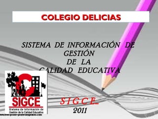 El documento describe el Sistema de Información para la Gestión de la Calidad Educativa (SIGCE), una herramienta que permite a las instituciones educativas registrar y organizar información sobre procesos de evaluación, planes de mejoramiento y proyectos educativos. El SIGCE tiene como objetivos apoyar los procesos de gestión de calidad educativa, facilitar la toma de decisiones informadas y la entrega de información requerida.