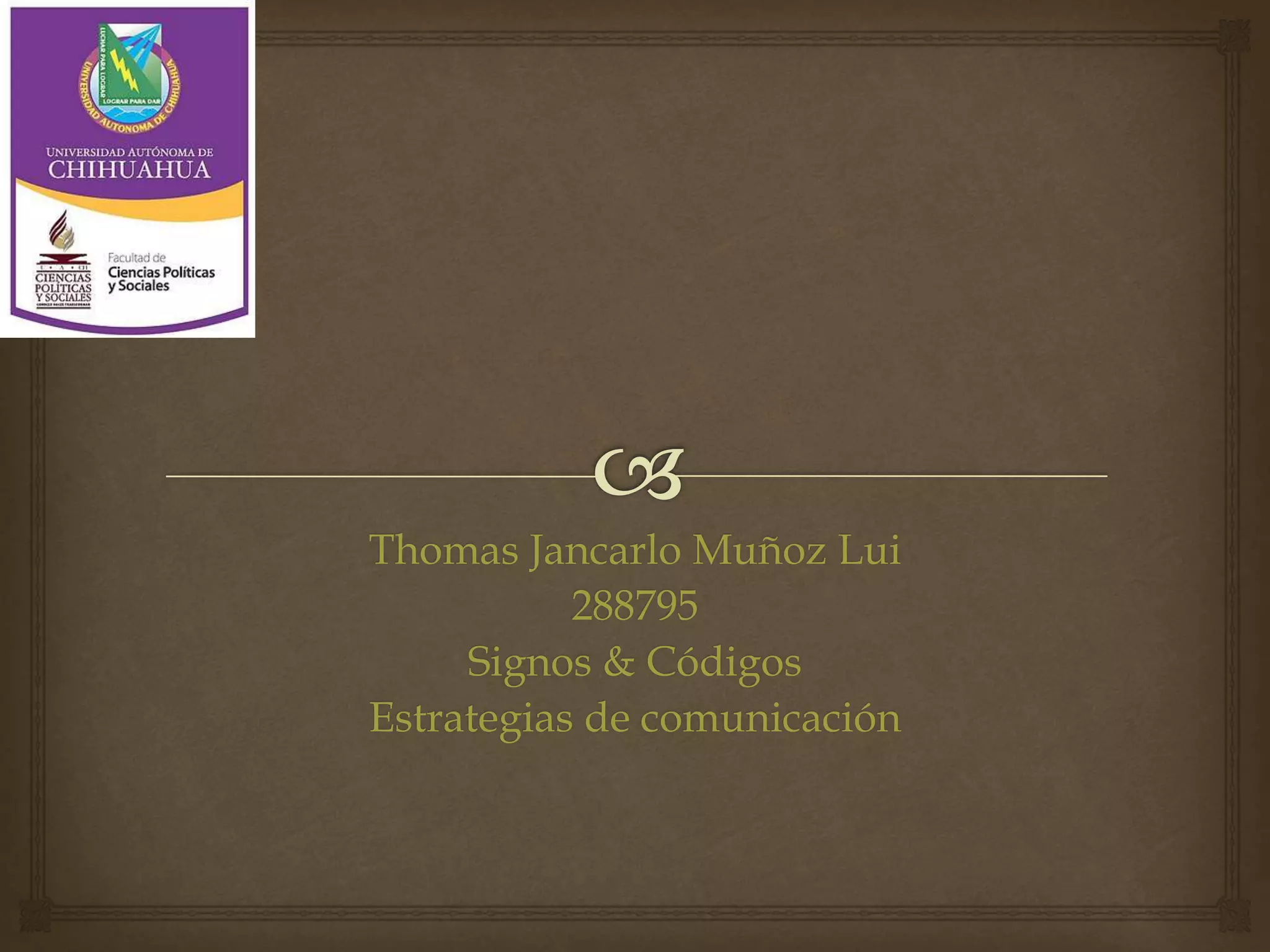 Este documento define y explica varios tipos de signos y códigos de comunicación. Define signos como representaciones gráficas que pueden entenderse en cualquier idioma, y distingue entre signos naturales e artificiales. Define códigos como conjuntos de elementos que se combinan siguiendo reglas para intercambiar información. También define símbolos como representaciones de ideas, creencias o ideales, e índices como indicadores de la presencia de algo que dan sentido a la situación.