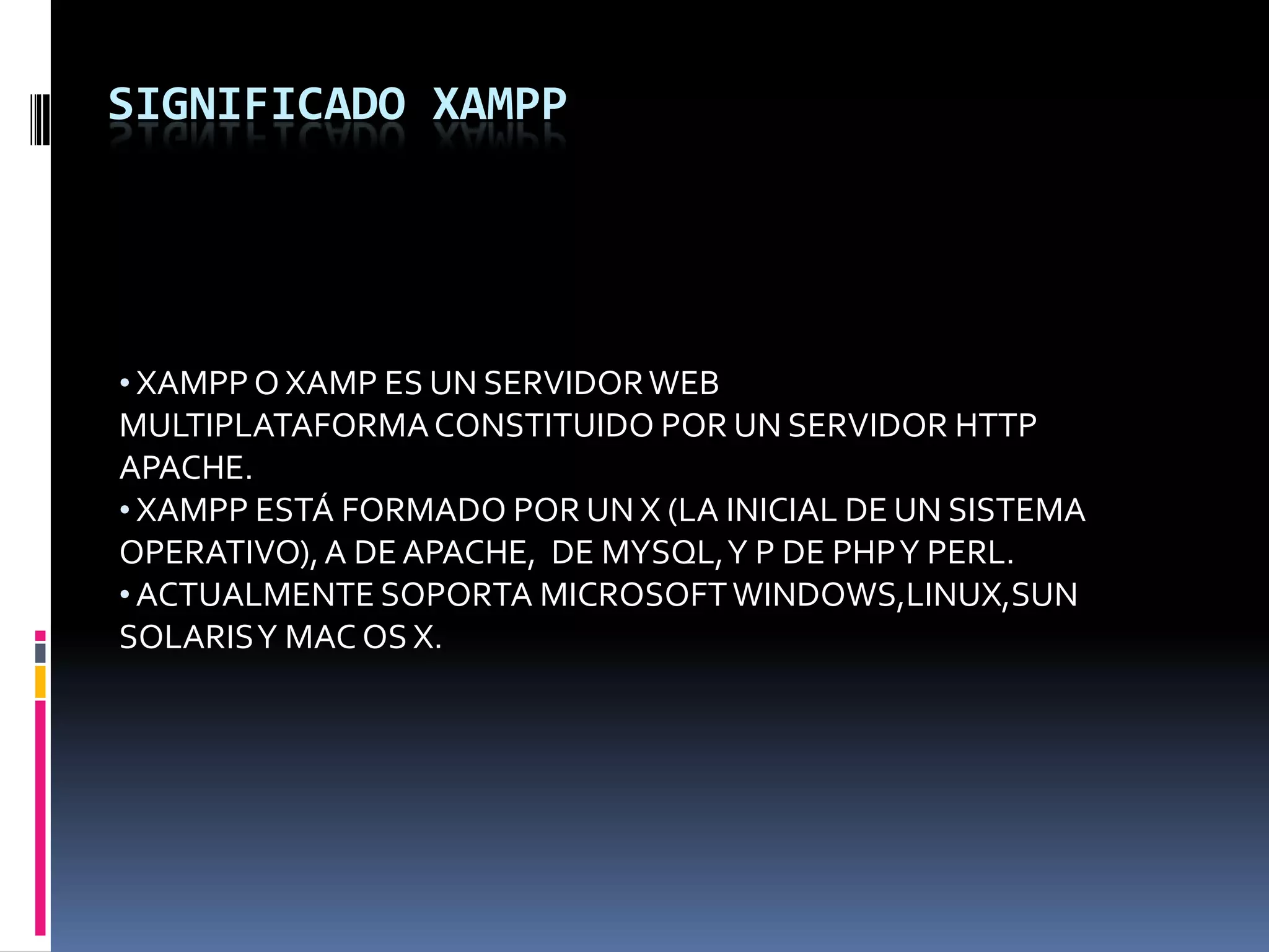 XAMPP es un servidor web multiplataforma compuesto por Apache, MySQL, PHP y Perl. Se utiliza como herramienta de desarrollo para probar sitios web localmente sin acceso a Internet, y también como servidor web debido a que incluye protecciones de seguridad. Fue creado para funcionar en sistemas operativos como Windows, Linux, Solaris y Mac OS X.