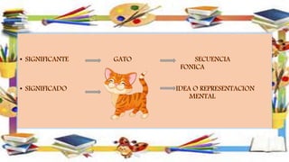 El signo lingüístico tiene dos facetas, el significado y el significante, que están relacionados de forma arbitraria e inmotivada. El signo lingüístico se caracteriza por su linealidad, ya que el significante es una sucesión de unidades que aparecen una tras otra en el tiempo, y por su doble articulación, pudiéndose descomponer la palabra en partes más pequeñas y siendo estas a su vez descomponibles. El signo lingüístico es a la vez mutable e inmutable, pudiendo evolucionar a través del tiempo