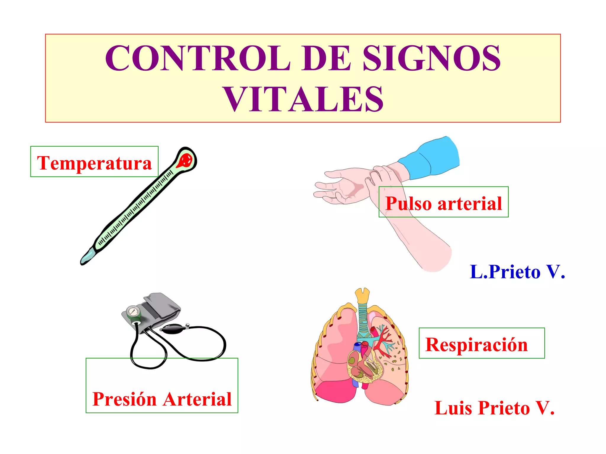 Este documento proporciona información sobre el control de signos vitales, en particular la temperatura y la respiración. Explica cómo medir y monitorear la temperatura oral, axilar y rectal, y los factores que afectan la temperatura corporal. También define la respiración, explica cómo evaluar la ventilación, frecuencia respiratoria y factores que la influyen. Proporciona valores normales de la frecuencia respiratoria según la edad.