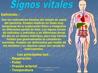 Este documento describe los signos vitales, en particular la respiración. Explica que la respiración mide el estado de salud del paciente y puede medirse de diferentes formas. Luego describe los cuatro tipos principales de respiración, factores que afectan la frecuencia y profundidad respiratoria, y diferentes términos relacionados como taquipnea, bradipnea y disnea. Finalmente, analiza los procedimientos para medir la frecuencia respiratoria y los factores que la influyen.