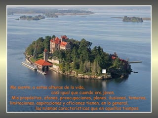 El autor, Jorge Luis Borges, expresa que a pesar de su edad avanzada, sus propósitos, ilusiones y aspiraciones siguen siendo los mismos que cuando era joven. Valora los afectos de sus seres queridos por encima de los bienes materiales y se esfuerza por cuidar sus relaciones. Mantiene la esperanza de envejecer rodeado del cariño de los demás.