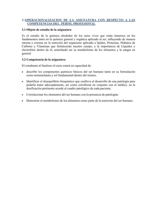 Este documento presenta el syllabus estándarizado de la asignatura de Bioquímica para la carrera de Enfermería en la Universidad Técnica de Machala. El syllabus describe los objetivos generales de la asignatura, su justificación y relación con las competencias del perfil profesional de Enfermería. Además, detalla la estructura de la asignatura dividida en 6 unidades temáticas, los contenidos de cada unidad y las estrategias de aprendizaje correspondientes. El syllabus provee los elementos necesarios para que los estudiantes ad