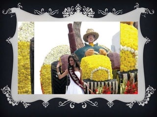 La Fiesta de las Flores y las Frutas de Ambato se celebra durante tres semanas en febrero y conmemora la necesidad de reconstruir la economía de Ambato y Tungurahua después de un terremoto en 1949. La fiesta incluye la bendición de flores, frutas y pan en la catedral, decoraciones de calles y parques con flores y frutas, y eventos artísticos y culturales como la elección de una reina. La feria atrae a miles de turistas y fortalece el sentido de identidad de los residentes.