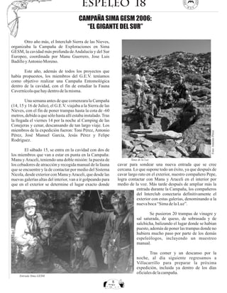 La campaña de espeleología en Sima Gesm, coordinada por el interclub Sierra de las Nieves, se centró en estudiar la fauna cavernícola a través de la instalación de trampas y el muestreo manual en el interior de la cavidad. Durante la exploración, se logró conectar nuevas galerías y se capturaron diversas especies, incluyendo un nuevo estafilínido. Los miembros del G.E.V. y la colaboración de otros espeleólogos fueron fundamentales para el éxito de la campaña.
