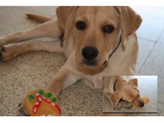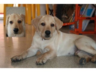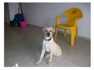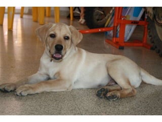 Simba es un cachorro labrador retriever que recibió su primer baño a los 3 meses y medio de edad y siempre parece estar feliz, a pesar de su corta edad de solo 6 meses.