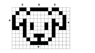 La simetría se produce cuando las partes de una figura, objeto o ser vivo corresponden exactamente en tamaño, forma y posición, de modo que si se divide con una línea imaginaria, ambos lados son iguales. El documento proporciona ejemplos de figuras simétricas como una cuadrícula con números que corresponden en posición horizontal y vertical, así como ejemplos de simetría en un escudo y el pelo.