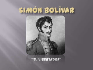 Simón Bolívar nació en 1783 en Caracas y luchó para conseguir la independencia de varios países latinoamericanos. Dirigió con éxito la Campaña Admirable de 1813 que liberó a Venezuela de España. En 1819 creó la Gran Colombia que incluía Colombia, Venezuela, Ecuador y Panamá, con él como presidente. Más tarde renunció debido a divisiones internas y murió en 1830 antes de poder exiliarse en Europa.