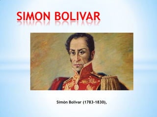 Simón Bolívar (1783-1830) fue un líder militar y político venezolano que jugó un papel crucial en la emancipación de Sudamérica del dominio español, siendo proclamado presidente de Venezuela y creador de la Gran Colombia. Tras una serie de batallas decisivas, logró la independencia de varios países sudamericanos, pero su muerte en 1830 marcó el declive de la unión latinoamericana, dando paso a fragmentaciones políticas y sociales. Su legado continúa influyendo en la historia y política de la región.