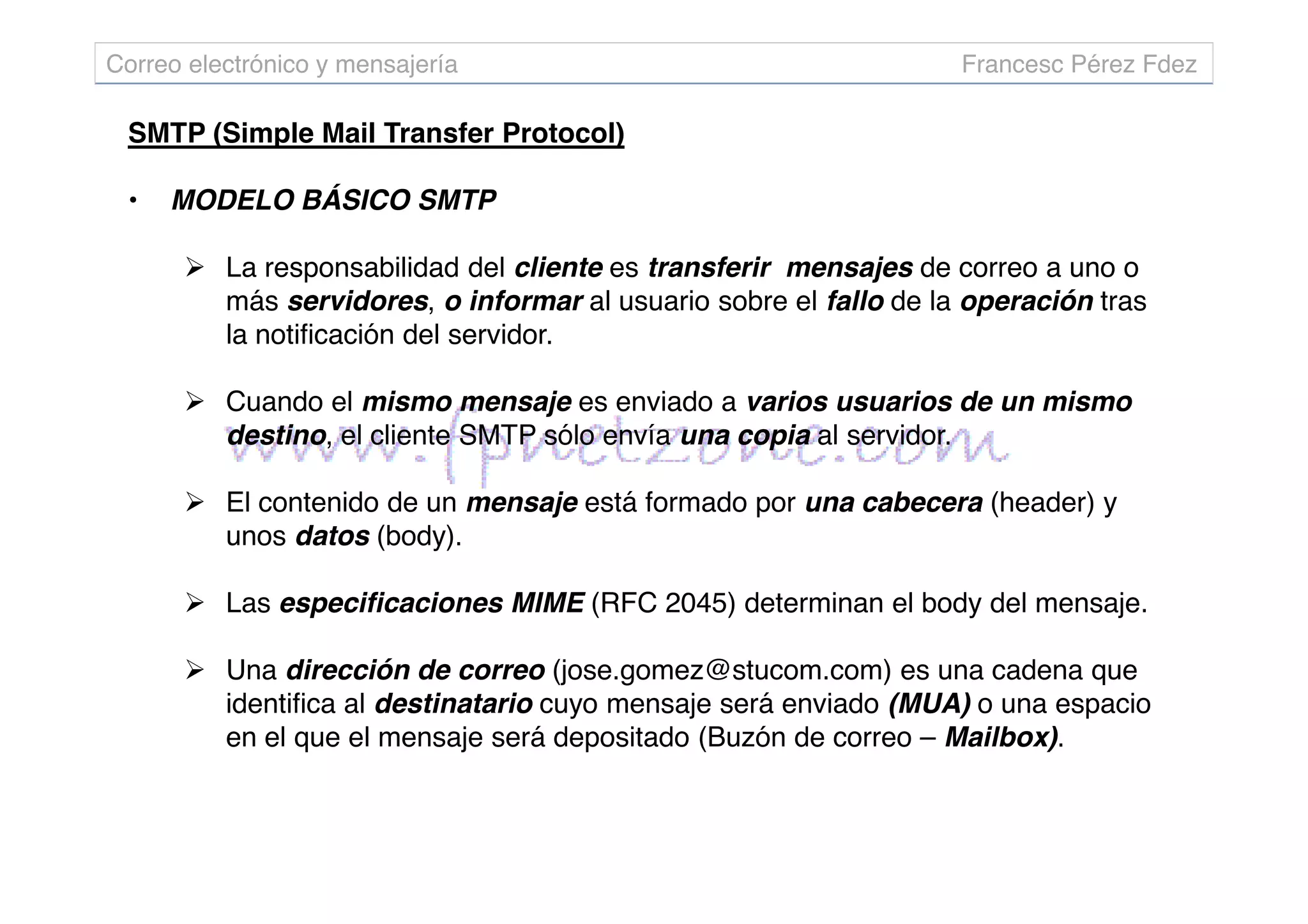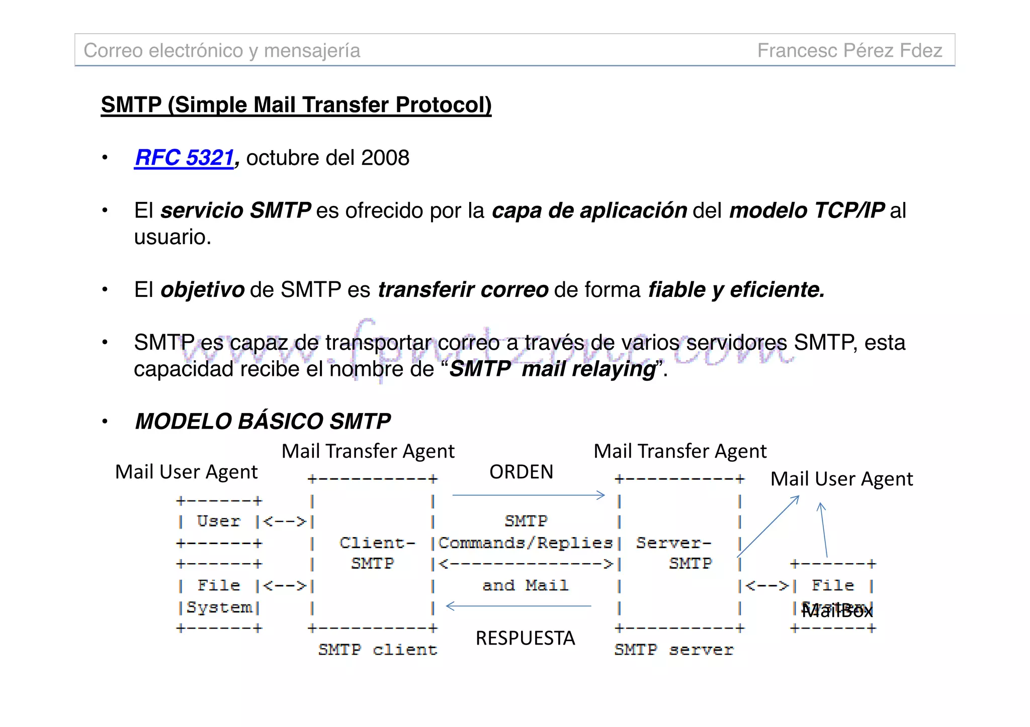 SMTP es un protocolo que transfiere correo de forma fiable y eficiente entre servidores, permitiendo que los mensajes se envíen a través de múltiples servidores. SMTP funciona mediante una serie de comandos y respuestas entre el cliente y servidor para identificar remitentes y destinatarios, transferir el cuerpo del mensaje, y confirmar la entrega del correo. Las extensiones SMTP hacen que el protocolo sea más robusto al agregar funcionalidades como verificación de direcciones y cancelación de envíos.
