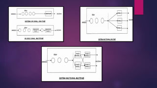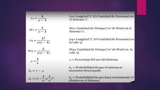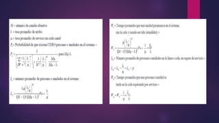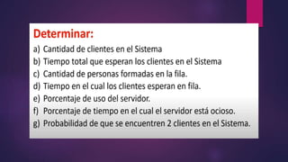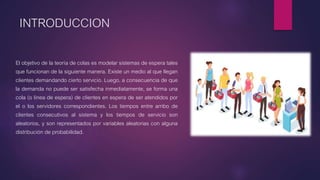 El documento introduce cuatro modelos de simulación de colas comúnmente usados. El Modelo A asume arribos de Poisson y tiempos de servicio exponenciales para un solo canal. El Modelo B considera múltiples canales atendiendo una sola cola. El Modelo C supone tiempos de servicio constantes. Y el Modelo D tiene una población limitada de clientes.