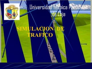 Este documento describe la simulación de tráfico y sus objetivos principales como simular el tráfico en diferentes situaciones, modelar los elementos que contribuyen a la simulación del tráfico y analizar el comportamiento global del tráfico a partir del comportamiento individual del conductor. Explica conceptos como la velocidad ideal de los vehículos, el modelo de cambio de carril y analiza situaciones básicas que muestran efectos de la congestión del tráfico como en una carretera circular, rampa de entrada, cambios de carril y con semáforos. Finalmente define