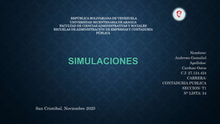 Este documento presenta diferentes estrategias para simulaciones y tablas. Explica que las simulaciones implican relacionar información y resultados intermedios para encontrar relaciones entre datos. También describe estrategias para tablas numéricas, conceptuales y lógicas que involucran identificar variables, representar datos, inferir relaciones y verificar resultados. Finalmente, resume una estrategia de búsqueda exhaustiva que implica explorar respuestas, eliminar alternativas inválidas y verificar respuestas contra las condiciones del problema.